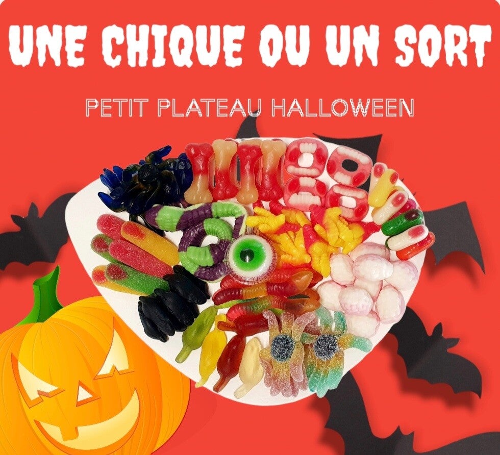 Plateau spécial Halloween comprenant +-500gr de chiques maléfiques
