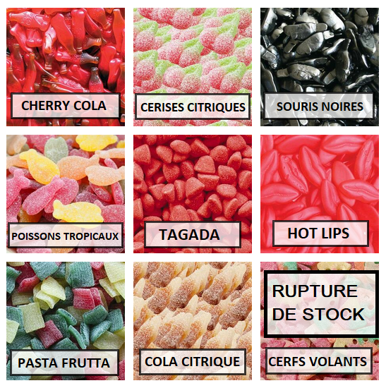 ATTENTION: choix de MAXIMUM 13 sortes de chiques pour 650gr